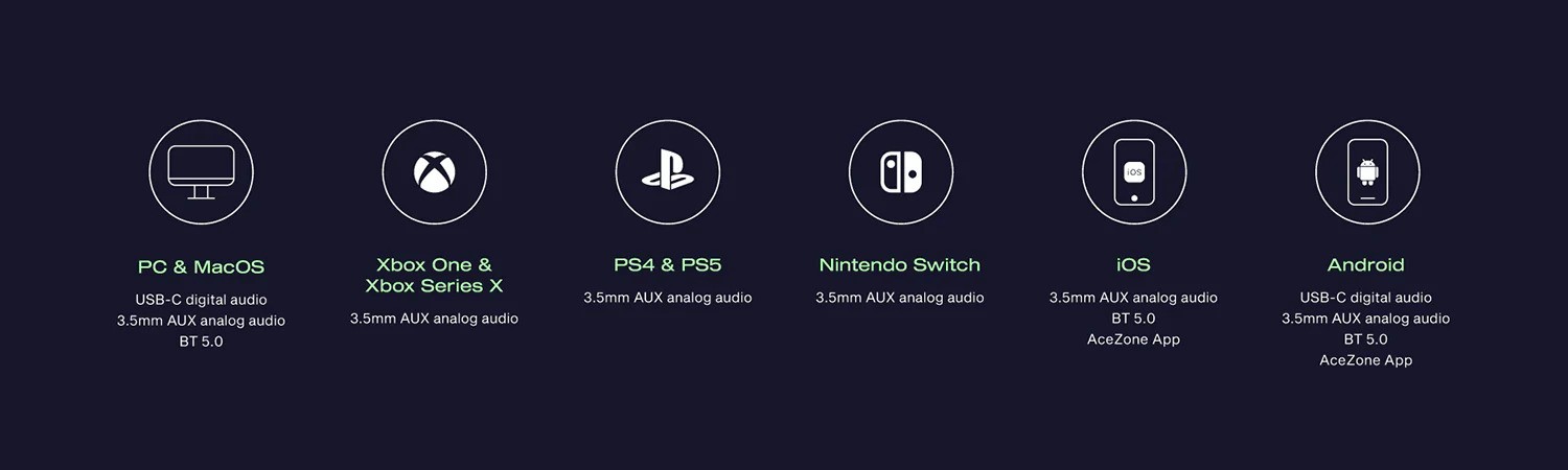 De AceZone-app op de mobiele telefoon configureert de headset op alle platforms.