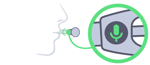 Voor een optimale geluidskwaliteit en stemopname voor de boommicrofoon op onze A-Spire moet je ervoor zorgen dat het groene microfoonsymbool op de boomarmmicrofoon naar je mond is gericht en dat de schuimtip stevig op zijn plaats zit.